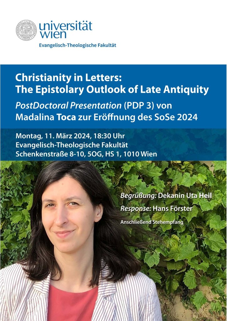Epistolary works have been at the core of the Christian literary practices from the beginning: out of the twenty-seven writings in the New Testament, no more than six are in different genres: the four gospels, the book of Acts, and Revelation. It is no surprise then that a similarly significant number of other early Christian works are in epistolary form among the apocrypha (e.g. the Epistles of Abgar and Jesus, or the correspondence between Paul and Seneca) as well as among patristic authors (e.g. Ignatius of Antioch or Clement of Rome), some of them rather unknown (e.g. Isidore of Pelusium, Barsanuphius of Gaza). Letters were therefore a very successful genre from the outset, and continued to be rather influential for the shaping of early Christian identity, theology and anthropology. This lecture will draw the main lines of such developments with a focus on epistolary corpora of late antique Christianity.